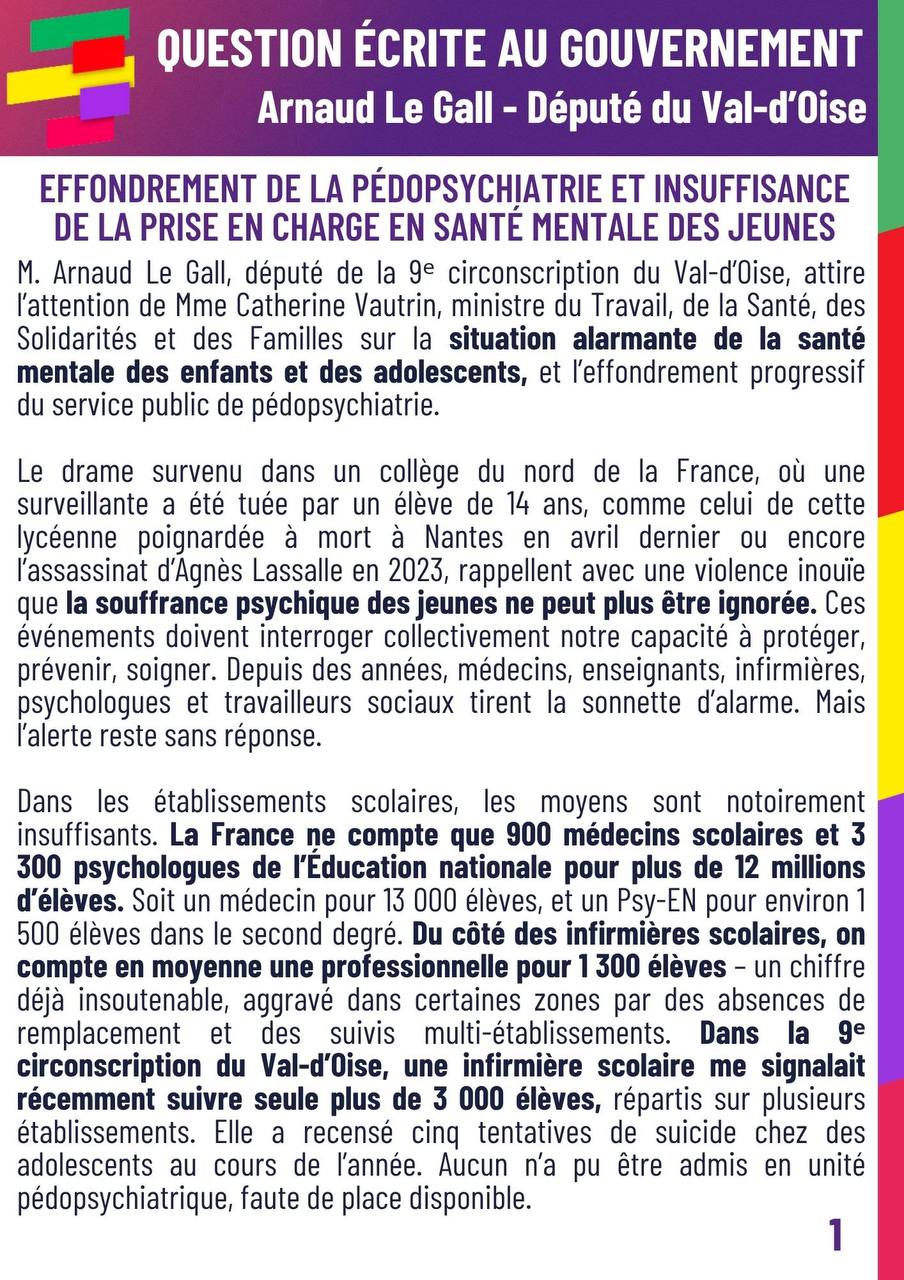 Santé mentale des jeunes : l’urgence ignorée ! Question écrite au gouvernement